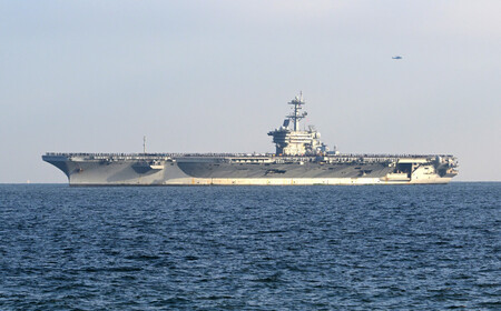 米海軍横須賀基地に向かって航行する原子力空母「ジョージ・ワシントン」=2024年11月、東京湾 日米両政府は、今月下旬のトランプ米大統領の来日に合わせ、両首脳が米海軍横須賀基地(神奈川県横須賀市)を訪れ、原子力空母「ジョージ・ワシントン」を視察する方向で検討に入った。複数の日本政府関係者が11日、明らかにした。