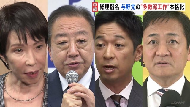 来週21日に予定される総理大臣指名選挙をめぐり、与野党の多数派工作が本格化しています。きょう午後には立憲民主、日本維新の会、そして国民民主3党の党首が会談し、連携に向けて協議する予定です。国会から中継です。