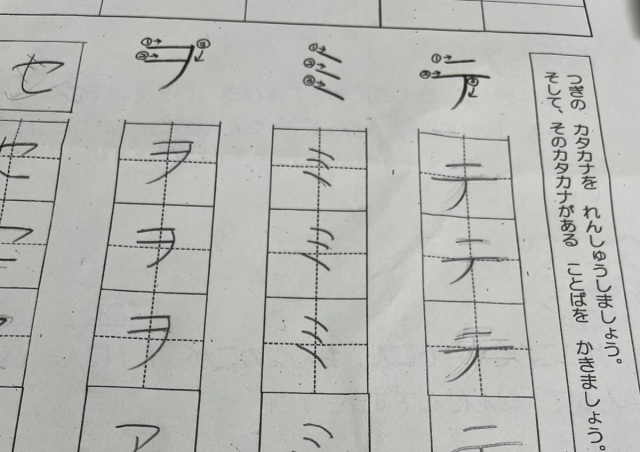 ¡¡¤½¤ÎÌäÂê¤Ï¡¢¡Ö¤Ä¤®¤Î¥«¥¿¥«¥Ê¤òÎý½¬¤·¤Þ¤·¤ç¤¦¡£¤½¤·¤Æ¡¢¤½¤Î¥«¥¿¥«¥Ê¤¬¤¢¤ë¤³¤È¤Ð¤ò¤«¤¤Þ¤·¤ç¤¦¡×¤È¤¤¤¦¤â¤Î¡£¤Þ¤ººÇ½é¤ËÅо줷¤¿¥«¥¿¥«¥Ê¤Ï¡Ö¥Æ¡×¤Ç¡¢Àµ¤·¤¤½ñ¤½ç¤Ç3²ó½ñ¤¤¤¿¤¢¤È¡¢¡Ö¥Æ¡×¤ò´Þ¤à¸ÀÍդȤ·¤Æ¡Ö¥Æ¡¼¥Ö¥ë¡×¤È¤Î²óÅú¤ò½ñ¤¹þ¤ß¤Þ¤¹¡£