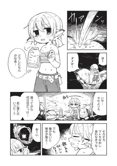 地下の鉱山で働き続けてへとへとのドワーフ。それを見兼ねたじいさんが、地上の飲食店に連れて行ってくれることに。聞きなれないメニューを勝手に頼まれたドワーフの前に、料理が乗ったお盆が運ばれてきて……。
