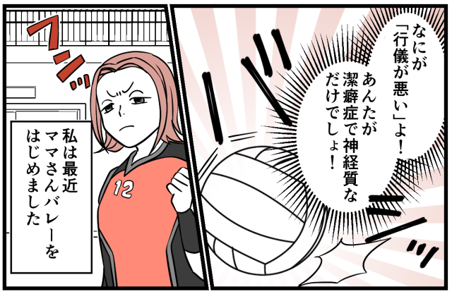 常識のかけらもない人間にはなにを言ってもムダだと思い、私はその怒りをバレーボールで発散させていました。途中、子どものおふざけがいきすぎたのか注意をされる場面もありましたが、子どもなら当然のこと。そんなに目くじら立てて怒ることもないと思っていました。