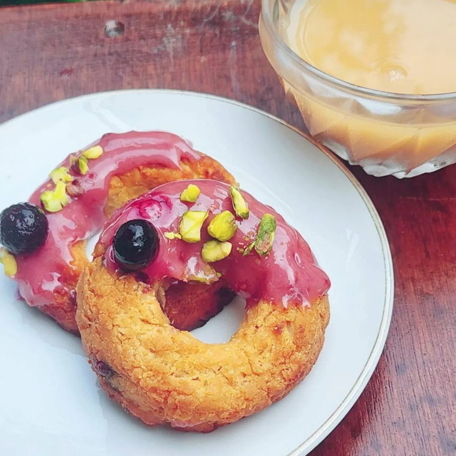 北欧・ラップランドの童話に登場するコケモモ(リンゴンベリー)をイメージした、かわいいピンク色のドーナツレシピ。ドーナツ型に整えた生地に爪楊枝で筋をつけて揚げるのが、カリカリのオールドファッションに仕上げるコツです。