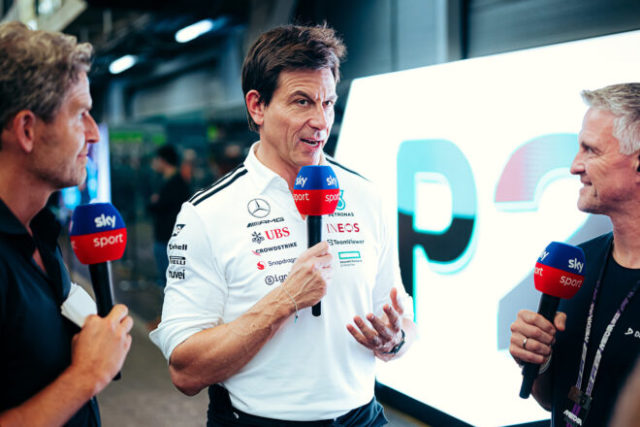 2025年F1第21戦サンパウロGP Sky Sportの取材を受けるトト・ウォルフ代表(メルセデス) ビジネス系ウェブサイト『Sportico.com』によると、メルセデス-AMG・ペトロナス・フォーミュラ1チームのチーム代表を務めるトト・ウォルフは、F1の金融バブルを最大限に活用し、メルセデスF1チームの株式33%のうちのごく一部を売却する予定だと報じられている。買い手候補、または買い手たちの身元は明らかにされていないが、記事によると、ウォルフは売却する株式に対して3億ドル(約464億2400万円)の支払いを求めており、それによるとメルセデスF1チームの評価額は60億ドル(約9285億円)という驚異的なものになる。