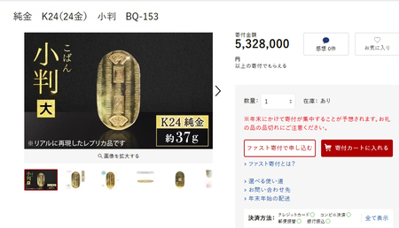 近年は、高所得者向けの返礼品も目立つ。純金製小判30グラム(寄付額530万円)や、高級スーツ仕立券(同3700万円)なども展開されている。そのため、高所得者に有利との見方があり、与党からは、制度の趣旨に沿った見直しを求める声も上がっている。