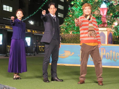 平岡は「すごくこだわりがあるんですね。下に迷路の演出があったり、すごいなと思いますね」と、点灯したツリーをまじまじと見つめた。「炎のゴブレットから影響を受けている舞台でもあるので、すごく関連性があると思います」と話した。