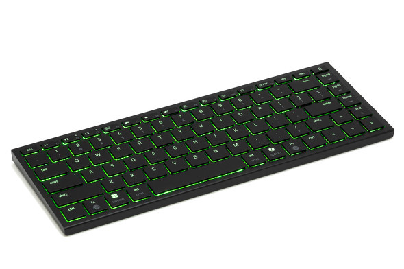 本製品はBluetooth 5.0による無線接続とUSB Type-C端子による有線接続に対応し、別売のUSBドングルを使用すれば独自の2.4GHzワイヤレス接続「Hyperspeed Wireless」にも切り替えられる。カラーはブラック1色展開で、キーキャップにはUVコーティングABS素材を採用する。ライティングはシングルゾーン仕様の「Razer Chroma RGB」を搭載し、発光は比較的控えめだ。