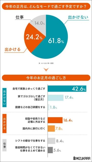 ¡¡º£Ç¯¤ÎǯËöǯ»Ï¤Î¥â¡¼¥É¤òÄ´ºº¤·¤¿¤È¤³¤í¡¢Ìó6³ä¤¬²È²¤È¤æ¤Ã¤¯¤ê²á¤´¤¹¤È²óÅú¤·¤Þ¤·¤¿¡£¤Þ¤¿¡¢Àµ·îÃæ¥¢¥¯¥Æ¥£¥Ö¤Ë²á¤´¤¹¿Í¤Ï»Å»ö¤âÀѶËŪ¤Ç¡¢¿²Àµ·î¤Î¿Í¤Ï»Å»ö¤â¾Ã¶ËŪ¤È¤¤¤¦·¹¸þ¤â¡£
