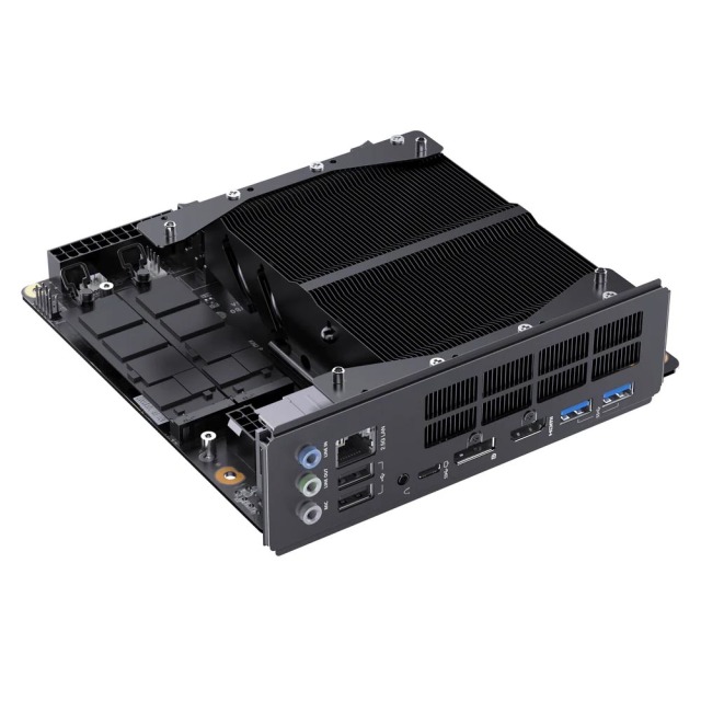M.2スロットは2基(PCIe 4.0×2)を搭載。2.5GbE有線LAN×1、USB 3.2 Type-Cポート、HDMI 2.1/DisplayPort映像出力などを利用可能だ。