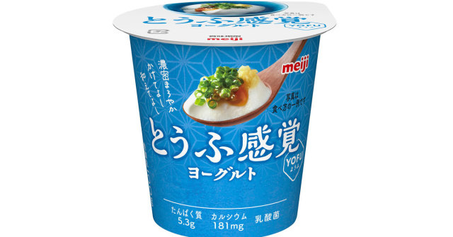 明治のヨーグルトが豆腐売り場に並んでいる。「明治とうふ感覚ヨーグルト YOFU(ようふ)」(希望小売価格160円)は、2025年10月から四国エリア限定で販売している商品だ。しょうゆなどの調味料をかけて食べることを前提に開発し、豆腐のように副菜やおつまみとして楽しめる。