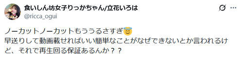 ¤½¤·¤Æ¤ê¤Ã¤«¤Á¤ã¤ó¤Ï25Æü¡Ö¥Î¡¼¥«¥Ã¥È¥Î¡¼¥«¥Ã¥È¤â¤¦¤¦¤ë¤µ¤¹¤®¡¡ÁáÁ÷¤ê¤·¤ÆÆ°²èºÜ¤»¤ì¤Ð¤¤¤¤´Êñ¤Ê¤³¤È¤¬¤Ê¤¼¤Ç¤¤Ê¤¤¤È¤«¸À¤ï¤ì¤ë¤±¤É¡¢¤½¤ì¤ÇºÆÀ¸²ó¤ëÊݾڤ¢¤ë¤ó¤«¡©¡©¡×¤ÈÅꤲ¤«¤±¤¿¡£
