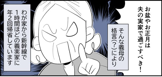 「お盆やお正月は夫の実家で過ごすべき!!」という義母の決めた謎ルールのもと、わが家は年に2回、長期休みには、新幹線で1時間ほどかかる義実家に帰省しています。私の実家は徒歩10分のところにありますからいつでも会えますし、別に問題はないのですが。