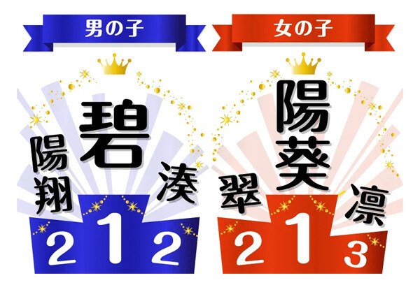 °ìÊý¡¢½÷¤Î»Ò¤Î̾Á°¥é¥ó¥¥ó¥°TOP3¤Ï¡¢1°Ì¡ÖÍÛ°ª(¼ç¤Ê¤è¤ß:¤Ò¤Þ¤ê)¡×¡¢2°Ì¡Ö¿é(¼ç¤Ê¤è¤ß:¤¹¤¤)¡×¡¢3°Ì¡ÖÑÛ(¼ç¤Ê¤è¤ß:¤ê¤ó)¡×¤È¤¤¤¦·ë²Ì¤Ë¡£¡ÖÍÛ°ª¡×¤È¡ÖÑۡפϰÂÄꤷ¤¿¿Íµ¤¤ò°Ý»ý¤·¤Æ¤ª¤ê¡¢¶áǯÃíÌÜÅÙ¤¬¹â¤Þ¤Ã¤Æ¤¤¤ë¡Ö¿é¡×¤Ï2°Ì¤Ø¤È½ç°Ì¤ò¿¤Ð¤·¤¿¡£