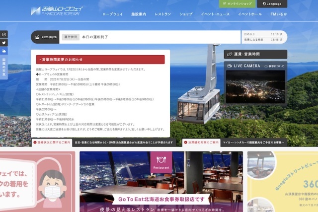 函館山ロープウェイは、1月1日から当面の間営業を休止する。