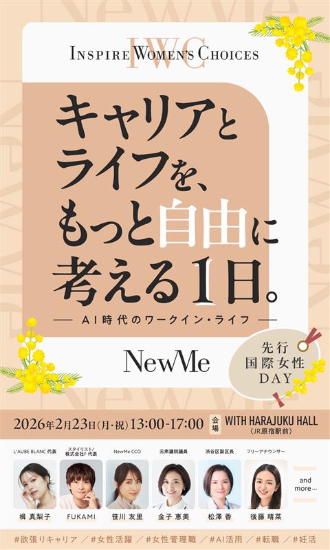 ▶︎ イベント「キャリアとライフを、もっと自由に考える1日―AI時代のワークイン・ライフ―」の詳細・参加申込みは、NewMeサイト内で。