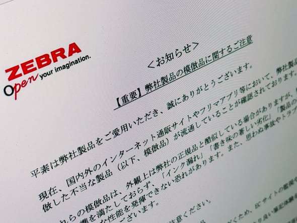 筆記具メーカーのゼブラは1月16日、「インターネット通販サイトやフリマアプリ等において、弊社製品を模倣した製品が流通している」と注意喚起した。ECサイトの監視や模倣品への対応を継続的に行っているという。
