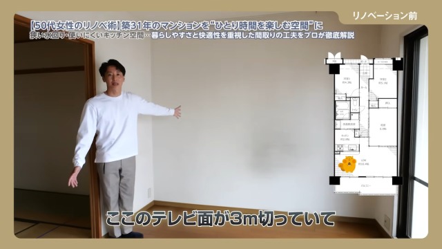今回の舞台は、50代女性が購入した築31年の3LDKマンション。「日々のひとり時間を快適にしながら、子どもが帰省した際には泊まってもらえるスペースも確保したい」という要望をかなえたフルリノベーションのビフォーアフターを、RENO PLUSの店長・柴田さんが丁寧に紹介しています。