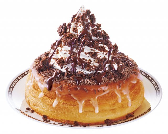 昨年のこだわりはそのまま継承。クラブハリエのバームクーヘンの味わいを再現するため、デニッシュにはシュガーコーティングを施している。コク深いショコラソースとソフトクリームがとろけ合い、パリパリのショコラフレークとザクザクのショコラクッキーが奏でる、食感のコントラストが楽しい一品となっている。