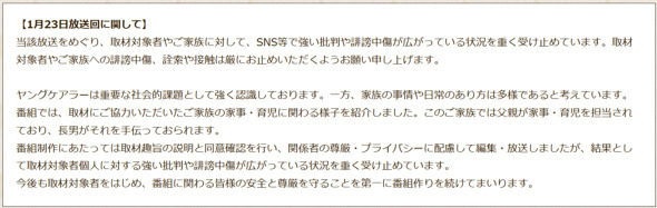 ¡¡Ä«ÆüÊüÁ÷¥Æ¥ì¥Ó¤Ï¡¢Ãæ½ý¤¬¹¤¬¤Ã¤Æ¤¤¤ë¤³¤È¤Ë¤Ä¤¤¤Æ¡Ö½Å¤¯¼õ¤±»ß¤á¤Æ¤¤¤ë¡×¤È¤·¡¢¡Ö¼èºàÂоݼԤ䤴²È²¤Ø¤ÎÈðëîÃæ½ý¡¢Á§º÷¤äÀÜ¿¨¤Ï¸·¤Ë¤ª»ß¤á¤¤¤¿¤À¤¯¤è¤¦¤ª´ê¤¤¿½¤·¾å¤²¤Þ¤¹¡×¤È¥³¥á¥ó¥È¡£