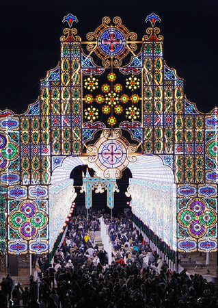 震災が起きた1995年以降、コロナ禍を除いて毎年開催され、今回の作品テーマは「神戸の鼓動、光の物語」。メイン会場は同市中央区の公園「東遊園地」や「メリケンパーク」(一部有料)など計3カ所で、東遊園地には壁掛け状の装飾作品「スパッリエーラ」が、メリケンパークには光の回廊「ガレリア」が展示されている。