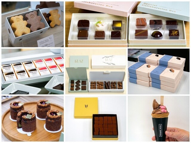 「スペシャルコラボレーションBOX JAPAN」(6個入、3564円)は、6人の日本人シェフのブランド(カラティール、ショコラティエ パレドオール、シェ・シバタ、ル ショコラ ドゥ アッシュ、モリ ヨシダ、トシ・ヨロイヅカ)のショコラを1個ずつ1箱に集約したものです。いずれも横浜高島屋では、2月1日から発売されます。