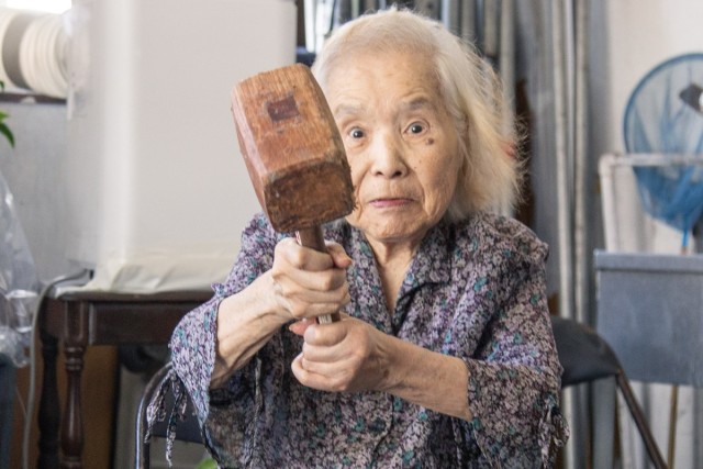 鉄鋼職人だった利子さんの夫・文夫さんの逝去は、1967年のこと。このころには、ポン菓子は定番のおやつとしてすっかり定着していた。急増する注文をこなす重圧は、一人、利子さんの小さな肩にのしかかっていく。夫に代わり工場を仕切り、最盛期には60人もいた職人を束ね、さらには自ら徹夜で鉄を削る作業をするようにもなる。機械に薬指を挟まれる大ケガをしたのも、このころだ。