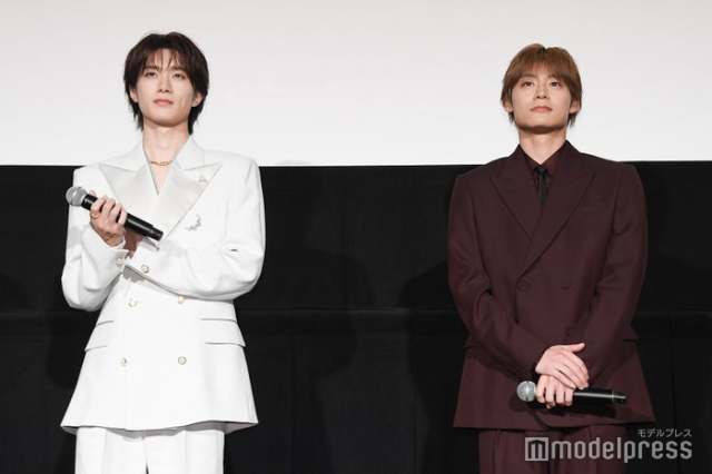 山中柔太朗、高松アロハ(C)モデルプレス 【モデルプレス=2026/02/14】山中柔太朗(M!LK)と高松アロハ(「高」は正式には「はしごだか」/超特急)、八重樫風雅監督が2月14日、映画『純愛上等!』公開記念舞台挨拶に登壇。サプライズゲストに驚く場面があった。