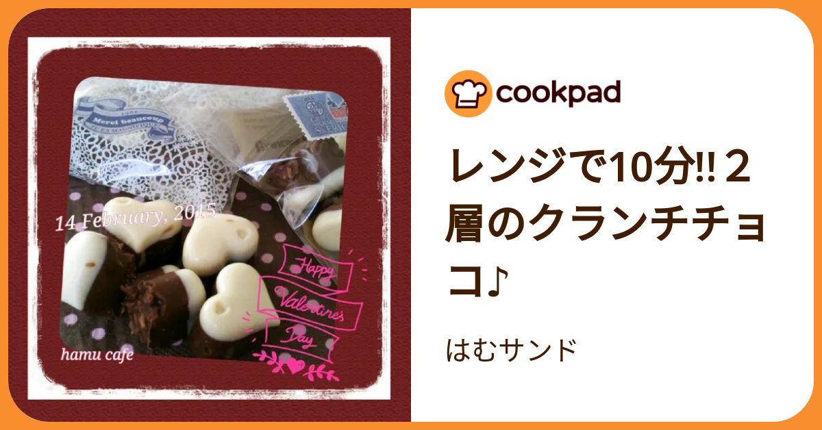 おしゃれな2層のクランチチョコも、レンジを使えばあっという間。コーンフレーク、ミルクチョコ、ホワイトチョコの3つだけで作れるのも嬉しいところ。