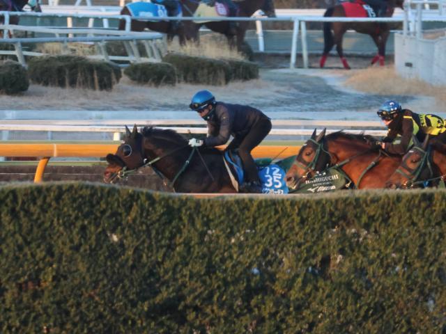 怪我から復帰した幸英明騎手が跨り、朝一番のCWで3頭併せ。古馬2勝クラス、古馬1勝クラスの2頭を追走して、最後方からという流れ。先頭がちょうどよいラップを踏んでいったことで淀みない流れをつくり、かなり引き締まった流れだった。