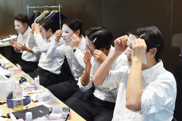 慣れないシートマスクにテンションが上がっている学生たち 「人は見た目が100%」という言葉があるように、ビジネスシーンにおいて視覚的な印象は信頼を左右する大きな要素。最近では“美容男子”も急増し、性別を問わず自分を磨く人が増えているが、「何から手をつければいいのか…」と悩む人も少なくない。そんな中、青山商事(株)の「SUIT SQUARE(スーツスクエア)」と(株)ファイントゥデイの「uno(ウーノ)」がコラボし、来春から社会人となる慶應義塾大学ソッカー(サッカー)部のメンバー30名を対象とした「肌×服でつくるトータルコーディネート講座」を開催。プロの指導のもと、現役大学生たちが“印象”という武器を身につけ、大人のビジネスパーソンへと変身していく実践的な学びの様子をレポート。