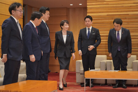閣議に臨む高市早苗首相(右から3人目)=20日午前、首相官邸 高市早苗首相は20日の衆参両院本会議で、就任後初の施政方針演説を行った。経済力や技術力、防衛力などを挙げ、「日本の総合的な国力を徹底的に強くする」と宣言。予算編成の在り方を見直し、成長分野の国内投資を喚起する考えを表明した。日本と世界の繁栄に役割を果たす「責任ある日本外交」やスパイ防止法制の検討加速も打ち出した。