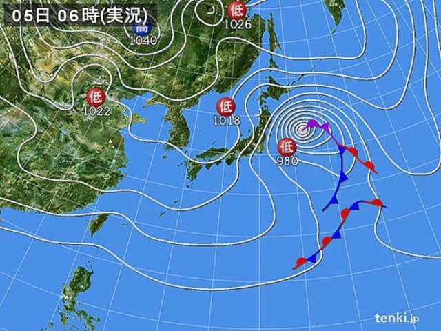 今日5日は発達した低気圧が日本の東にあって動きが遅くなっています。東北の太平洋側や関東は今日5日も風の強い状態が続いています。
