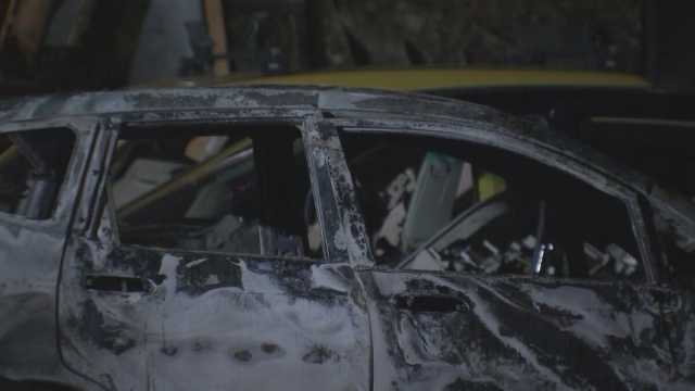 この火事で、車を解体する会社の敷地内にあるプレハブの建物1棟と廃棄予定だった車数十台が焼けたほか、火は隣接する山林にも燃え移りましたが、消防車14台が出動して消火活動にあたり、およそ2時間後に、燃え広がる恐れはなくなったということです。