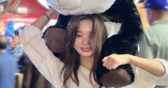 アミューズメントパークで撮られたもののようで、頭には巨大なパンダのぬいぐるみを乗せて楽しんでいる様子。ヘソ出しスタイルに、ゆるく巻いたブラウン×ベージュ系カラーのセミロングヘアで、どこかギャル感とクールな雰囲気がただよっています。そこから日本に帰国し、3年がたった現在は……。