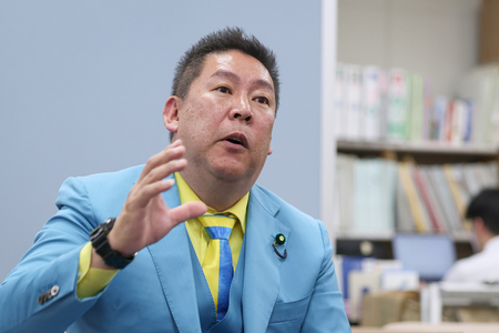 政治団体「NHKから国民を守る党」の立花孝志党首=2025年5月、神戸市中央区 昨年6月の兵庫県尼崎市議選で選挙ポスター代を市に水増し請求し、約48万円をだまし取ったとして、県警が詐欺容疑で、政治団体「NHKから国民を守る党」党首の立花孝志被告(58)=元県議への名誉毀損(きそん)罪で起訴=や、同団体所属の福井完樹市議(54)ら3人を書類送検したことが24日、捜査関係者への取材で分かった。