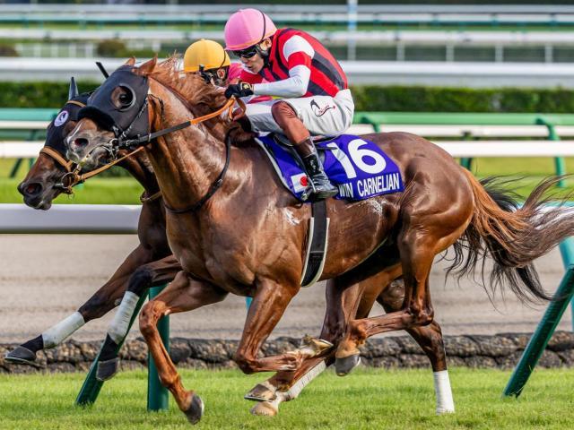 高松宮記念2026に出走予定のウインカーネリアン(25年9月撮影、ユーザー提供:旅っ程さん) 25年のスプリンターズ覇者のウインカーネリアン(牡9、美浦・鹿戸雄一厩舎)が、高松宮記念(4歳上・GI・芝1200m)で史上初となる9歳でのJRA平地GI制覇を狙う。