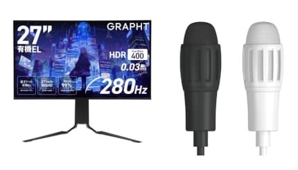 スタンドレスに鋭指向性 GRAPHTのQD-OLEDゲーミングモニターと配信特化の超小型マイク MSYは3月27日、同社が展開する「GRAPHT」ブランド「GRAPHT STANDARD」シリーズから、QD-OLEDパネル搭載ゲーミングモニター「GR2728OEL-BK」、超小型コンデンサーマイク「GRAPHT Compact-Mic XLR Streamer Edition」の2製品を公式ECサイト、Amazon.co.jpで発売する。