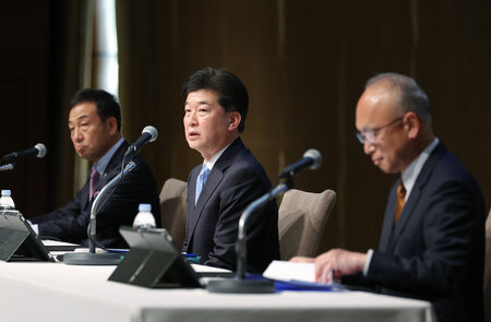 ·Ð±ÄÅý¹ç¤Ç´ðËܹç°Õ¤·µ¼Ô²ñ¸«¤¹¤ë¡¢¤·¤º¤ª¤«¥Õ¥£¥Ê¥ó¥·¥ã¥ë¥°¥ë¡¼¥×¡Ê£Æ£Ç¡Ë¤Î¼ÆÅĵ׼ÒĹ¡ÊÃæ±û¡Ë¤é¡á£²£·Æü¸á¸å¡¢ÅìµþÅÔÀéÂåÅĶ衡¤·¤º¤ª¤«¥Õ¥£¥Ê¥ó¥·¥ã¥ë¥°¥ë¡¼¥×¡Ê£Æ£Ç¡Ë¤È̾¸Å²°¶ä¹Ô¤¬¡¢¸©¤ò¤Þ¤¿¤°·Ð±ÄÅý¹ç¤ËƧ¤ßÀڤä¿¡£¡Ö¶âÍø¤Î¤¢¤ëÀ¤³¦¡×¤ÎÅþÍè¤ÇͶâ¤äÍ»»ñÀè¤Î³ÍÆÀ¶¥Áè¤Ï·ã¤·¤µ¤òÁý¤·¤Æ¤ª¤ê¡¢Ã϶ä¤Î¡Ö±Û¶Ï¢·È¡×¤Îư¤¤¬²Ã®¤·¤Æ¤¤¤ë¡£
