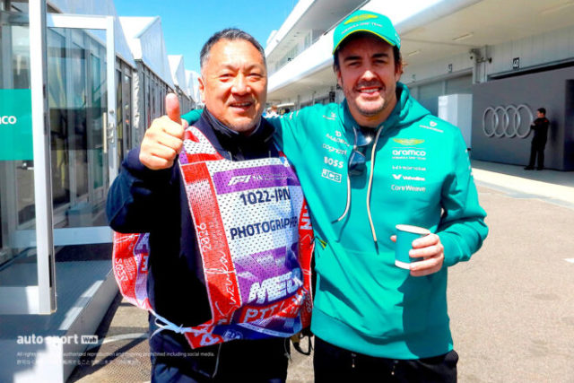 フェルナンド・アロンソ(アストンマーティン)はフェラーリ時代から家族のお祝い事にスピーチをもらったり、渋谷のハチ公事件では公衆の前に出られなくなったアロンソの代わりに私がスピーチしたり、いろいろとお世話されたり、したり、仕事以上に深い関係を築いた仲だった。「お子さん、お誕生、おめでとう」と言うと、「ありがとう」と言って握手した後、「じつはこのレースでひとまず現場取材を卒業するんだ」と切り出すと、「マジ!?」と。「でも、日本からあなたとホンダのレースはずっと見て伝えるから」と言うと、「競争力を発揮するまで、まだ少し時間がかかるかもしれないけど、頑張るよ」と誓ってくれた。