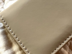 形状は二つ折りで、内側のスナップボタンでしっかりと閉じられます。カラーはベージュ(筆者購入)とブラックの2色が展開されています。