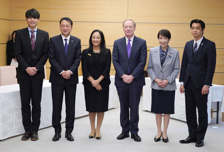 米マイクロソフト(MS)のブラッド・スミス社長(右から3人目)らの表敬を受ける高市早苗首相(同2人目)=3日、首相官邸 米マイクロソフトは3日、人工知能(AI)に関連して日本国内で2029年までに100億ドル(約1兆6000億円)を投資すると発表した。ソフトバンクやクラウドサービス大手のさくらインターネットと協業し、AIデータセンターなどを整備する。マイクロソフトとしては過去最大の対日投資となる。