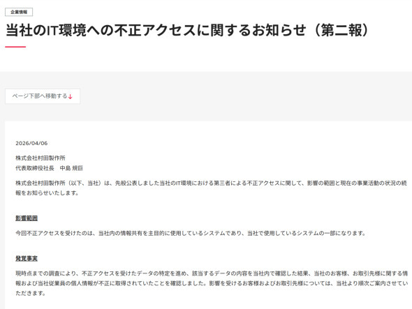 ¡¡ÅÅ»ÒÉôÉÊÂç¼ê¤Î¼ÅÄÀ½ºî½ê¤Ï4·î6Æü¡¢¼ÒÆâ¤Î¾ðÊó¶¦Í¤Ë»È¤Ã¤Æ¤¤¤ëIT¥·¥¹¥Æ¥à¤¬Âè»°¼Ô¤Ë¤è¤ëÉÔÀµ¥¢¥¯¥»¥¹¤ò¼õ¤±¡¢¸ÜµÒ¤ä¼è°úÀè¡¢½¾¶È°÷¤Î¸Ä¿Í¾ðÊó¤¬ÉÔÀµ¤Ë¼èÆÀ¤µ¤ì¤Æ¤¤¤¿¤³¤È¤ò³Îǧ¤·¤¿¤Èȯɽ¤·¤¿¡£
