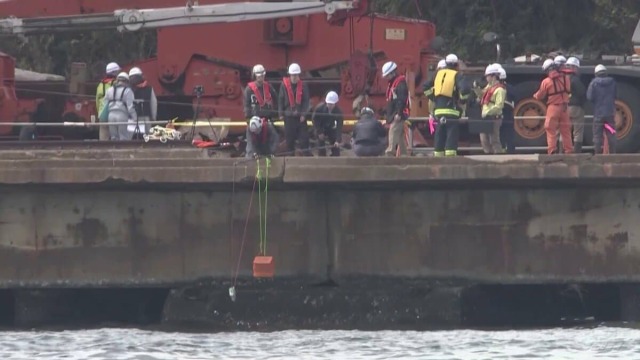 警察によりますと、きょうも午前8時ごろからおもりの落下によってあいたとみられる穴の周辺のがれきの撤去などが行われています。