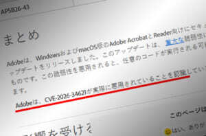 今回の更新は、悪用された場合にパソコン上で不正なコードを実行されるおそれがある深刻な脆弱性に対応するものです。Adobeは、この問題がすでに実際の攻撃に使われていることを把握しているとして、利用者にできるだけ早くアップデートするよう呼びかけています。