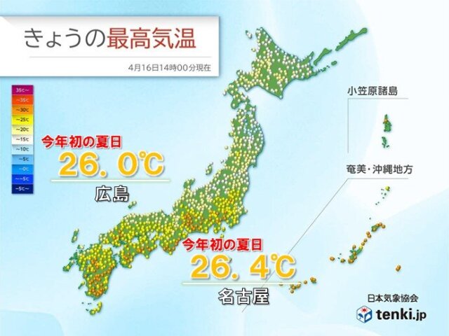 ¸á¸å2»þ¤Þ¤Ç¤ÎºÇ¹âµ¤²¹¤Ï¡¢Ì¾¸Å²°¤Ç26.4¡î¤ò´Ñ¬¤·¡¢º£Ç¯½é¤á¤Æ²ÆÆü¤È¤Ê¤ê¤Þ¤·¤¿¡£Ì¾¸Å²°¤Çºòǯ½é¤á¤Æ²ÆÆü¤È¤Ê¤Ã¤¿¤Î¤Ï4·î17Æü¤Ç¤·¤¿¡£