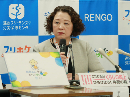 芳野友子会長は記者会見で、地方組織などとの議論を経て、5月中にも最終案を取りまとめる方針を示した。