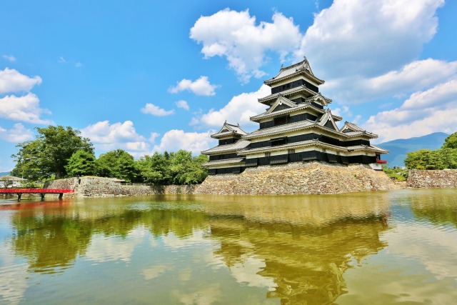 本記事執筆時点で1位にランクインしているのは「松本城(長野県松本市)」。得票数は370票、得票率は11.81%でした。天守が国宝に指定されている“国宝五城”の1つで、現存のものとしては日本最古の五重六階の天守は、黒漆と白漆喰の織り成す美しいコントラストが目を引きます。後方には雄大な北アルプスが広がり、内堀の水面に映る城の姿と合わせて眺めると、まるで1枚の絵画のようにも見えます。