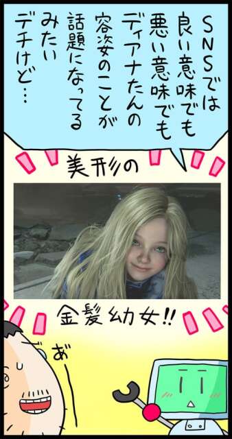 このように、ゲーム自体の完成度は高く、プレイした人の評価も上々な今作ですが、SNS上の一部で話題に上がっているのが、ディアナの見た目について。アンドロイドでありながら外見は「美形の金髪幼女」である彼女が、小児性愛を想起させるのではないか、といった意見が散見されます。