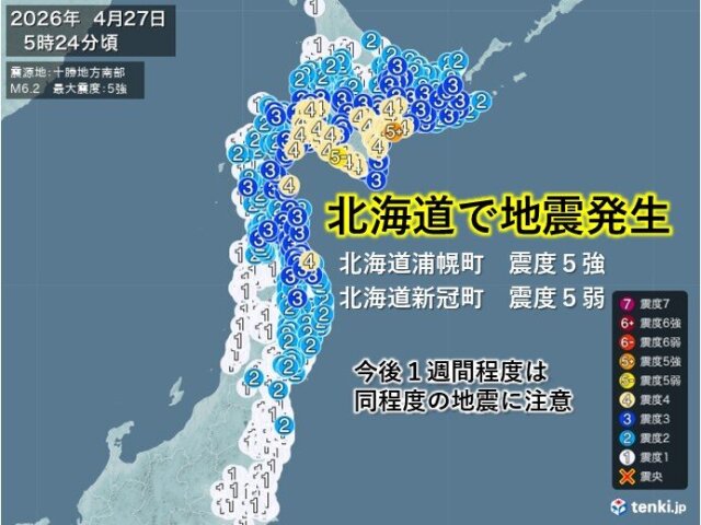 º£Æü27Æü(·î)ÌÀ¤±Êý¡¢Ë̳¤Æ»½½¾¡ÃÏÊýÆîÉô¤ò¿Ì¸»¤È¤¹¤ëºÇÂç¿ÌÅÙ5¶¯¤ÎÃϿ̤¬È¯À¸¤·¤Þ¤·¤¿¡£ÄÅÇȤο´ÇۤϤ¢¤ê¤Þ¤»¤ó¤¬¡¢Íɤì¤Î¶¯¤«¤Ã¤¿Ãϰè¤Ç¤Ï¡¢ÍîÀÐ¤ä³³Êø¤ì¤Ê¤É¤Ë·Ù²ü¤¬É¬ÍפǤ¹¡£ÃÏ¿ÌȯÀ¸¸å¤Ï¡¢Æ±ÄøÅÙ¤ÎÍɤ줬³¤¯²ÄǽÀ¤¬¤¢¤ê¡¢º£¸å¤ÎÃÏ¿Ì³èÆ°¤ä±«¤Ë¤âÃí°Õ¤¬É¬ÍפǤ¹¡£