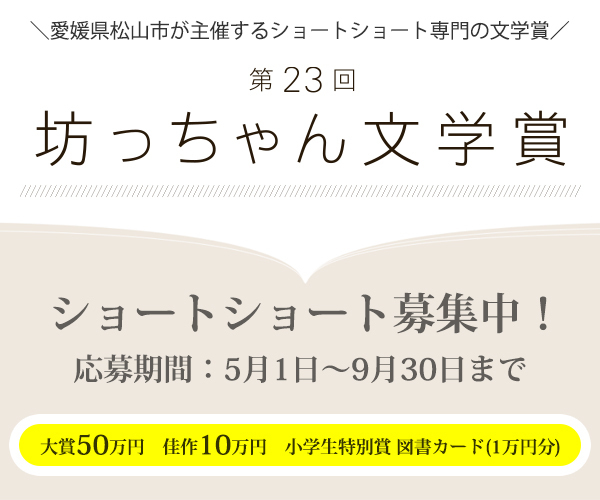 ¡¡Ê罸¤ÎÂоݤȤʤë¤Î¤Ï¡¢4000»ú°ÊÆâ¤Î¥·¥ç¡¼¥È¥·¥ç¡¼¥ÈºîÉʤÀ¡£¥Æ¡¼¥Þ¤Ï¼«Í³¤Ç¡¢ÆüËܸì¤Ç½ñ¤«¤ì¤¿Ì¤È¯É½¤Î¥ª¥ê¥¸¥Ê¥ëºîÉʤǤ¢¤ì¤Ð¡¢¥×¥í¡¦¥¢¥Þ¡¢Ç¯Îð¡¢¹ñÀÒ¤òÌä¤ï¤ºÃ¯¤Ç¤âÄ©Àï¤Ç¤¤ë¡£Âç¾Þ1¿Í¤Ë¤Ï¾Þ¶â50Ëü±ß¤¬Â£¤é¤ì¤ë¤Û¤«¡¢Éû¾Þ¤È¤·¤Æ»¨»ï¡Ö¥À¡¦¥ô¥£¥ó¥Á¡×¤Ø¤ÎºîÉʷǺܤȤ¤¤¦¡¢½ñ¤¼ê¤Ë¤È¤Ã¤ÆÂ礤ʥÁ¥ã¥ó¥¹¤¬Ì󫤵¤ì¤Æ¤¤¤ë¡£¤Þ¤¿¡¢²Âºî5¿Í¤Ø¤Î¾Þ¶â10Ëü±ß¤ä¡¢¼¡À¤Âå¤òô¤¦»Ò¤É¤â¤¿¤Á¤Î¤¿¤á¤Î¡Ö¾®³ØÀ¸ÆÃÊ̾ޡפâÀߤ±¤é¤ì¤Æ¤ª¤ê¡¢Ê¸³Ø¤ÎÌç¸Í¤ò¹¤¯³«Êü¤·¤Æ¤¤¤ë¤Î¤¬ÆÃħ¤Ç¤¢¤ë¡£